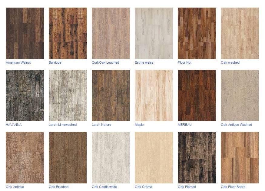С помощью фотопечати на покрытие наносят текстуры различных шпонов дерева. Оно может имитировать вполне традиционную для наших краев древесину — например, дуб или сосну. А любители экзотики могут выбрать для кухни пробковый пол с рисунком под зебрано, американский орех, палисандр и другие экзотические породы дерева.