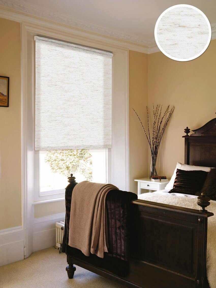 Так, например, в спальнях площадью около 15 квадратных метров можно отказаться от пышных штор и заменить их на рулонные или римские шторы. В тон им стоит подбирать текстиль: декоративные подушки и плед.