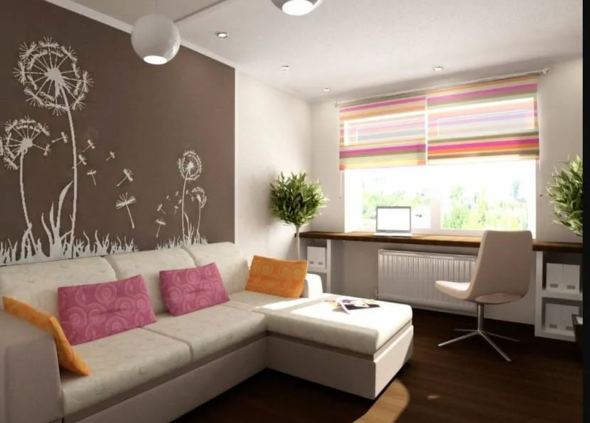 Студия 21 кв. м. должна быть оформлена таким образом, чтобы резкие цвета не напрягали жителей помещения. Для этого стоит выбирать теплые цвета как мебели, так и помещения в целом.