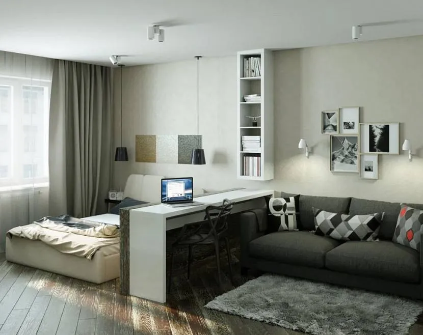 Чем отличается квартира студия от обычной квартиры с перепланировкой? Правильно, количеством окон. Студии в новостройках имеют вытянутую форму и ограничиваются только одним окном, так как не имеют никаких перегородок. Это существенно осложняет планирование функциональных зон. И ставит в тупик людей, которое не сталкивались с таким вопросом. В такой планировке стоят две основные задачи.