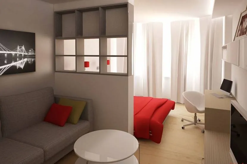 - Ограждение стеной. Не стоит мешать гостиную и спальню, так как полученная комната потеряет качество первого и второго. Ремонт квартиры студии не требует возведения фундаментальной перегородки. Достаточно небольшого простенка или даже стеклянной изгороди. Ее будет хватать для полноценного отдыха и даже отдельного сна.