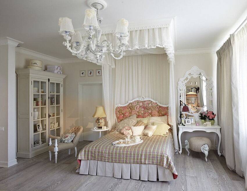 Любителям деревенской простоты с французскими нотками подходит прованс, который отличается пастельной цветовой гаммой, изысканной старинной мебелью с цветочным рисунком и обилием текстиля.