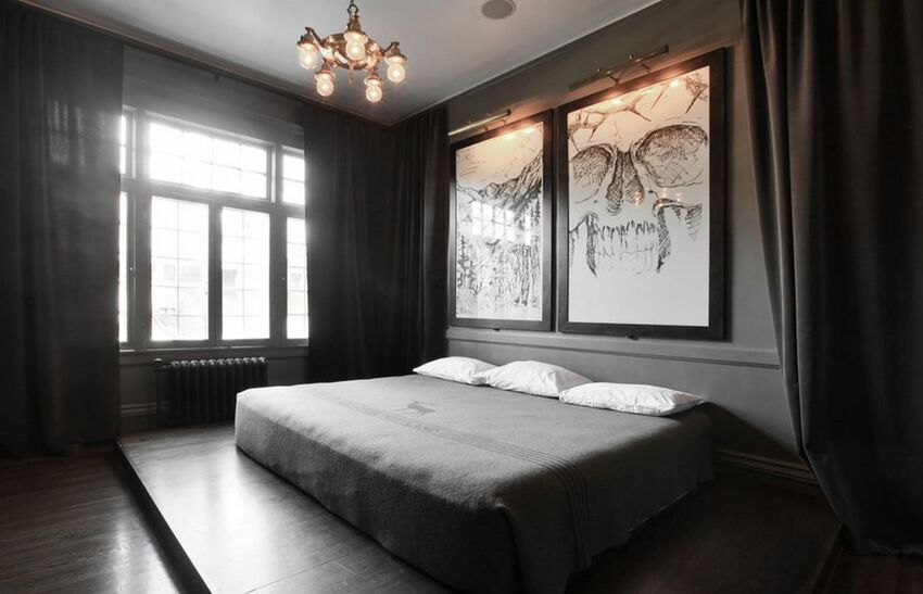 Подбор аксессуаров также зависит от особенностей выбранного стиля. Для современной спальни характерно использование урбанистических изображений: постеров, архитектурных элементов и т.д.