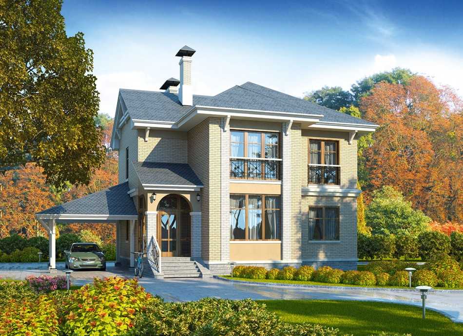 Двухэтажный дом 10х12 с балконом и открытой террасойИсточник catalog-plans.ru