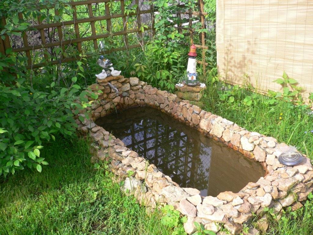 Как мы уже говорили, пруд можно сделать и из старой ванной. По сути, он ничем не хуже готового вида.
