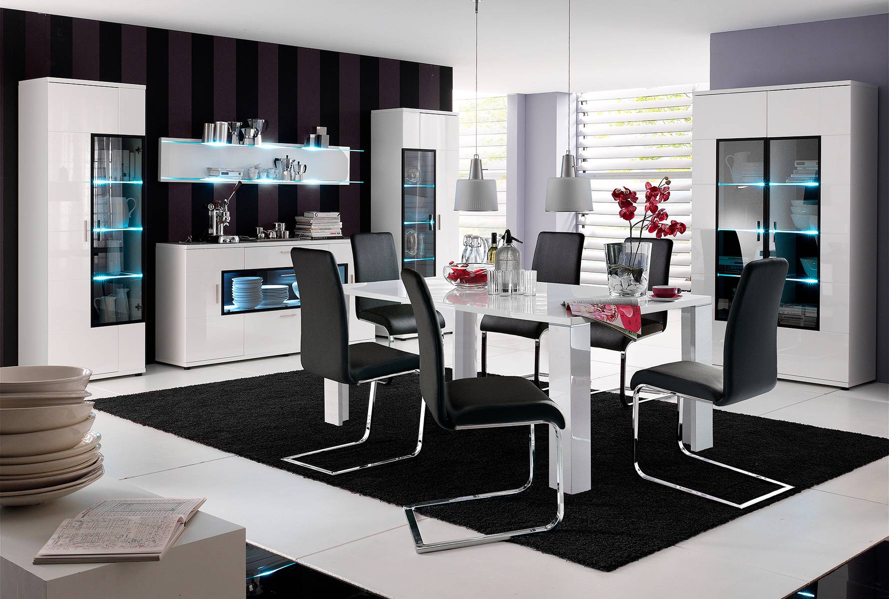 Обеденный стол должен иметь мягкую, спокойную подсветку. Поверхность стола должна освещаться достаточно, но освещение не должно быть очень ярким.