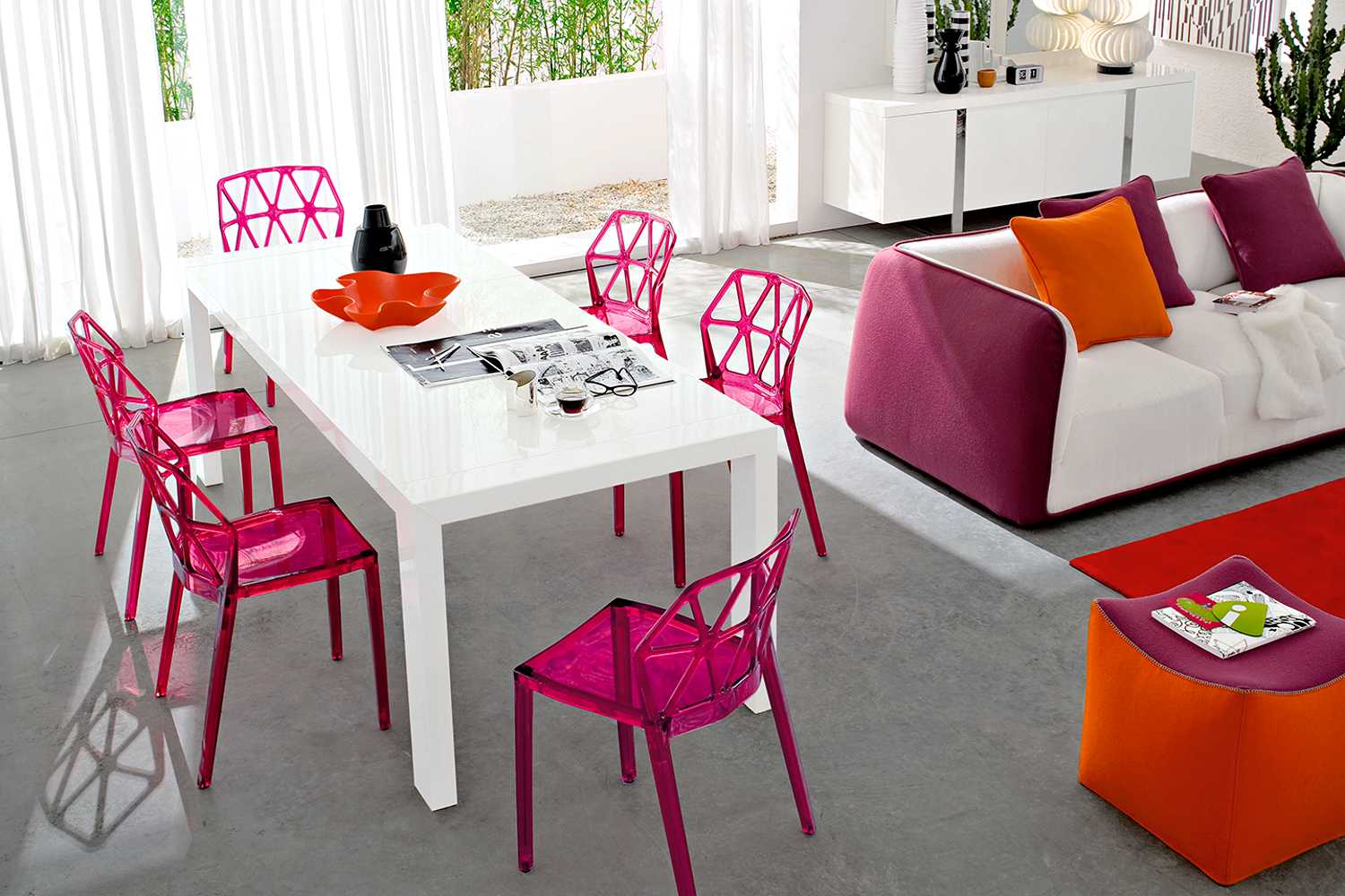 Пластиковые (обычно это столы или стулья) предметы мебели чаще встречаются в столовых общепита. Они почти невесомы, за ними легко ухаживать. Правда, такие изделия не слишком прочные, а в домашнем интерьере они не всегда смотрятся уместно. Поскольку зачастую эти модели можно складывать, то это удобно для комнат небольшой площади или если планируется часто приглашать гостей, а заставлять комнату стульями не хочется.