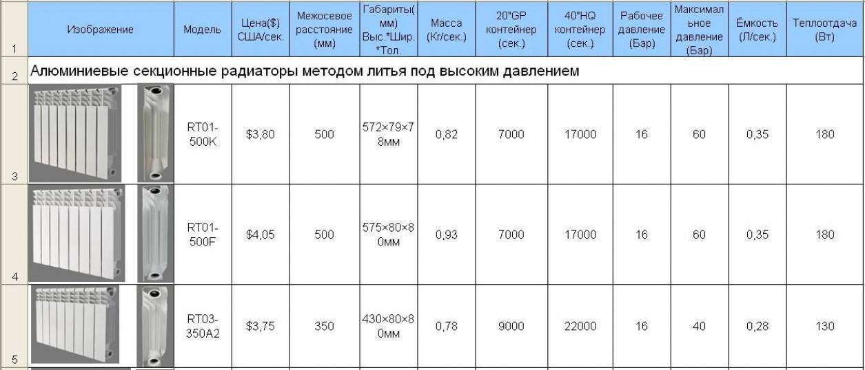 Важнейшими техническими характеристиками различных моделей радиаторов отопления являются: