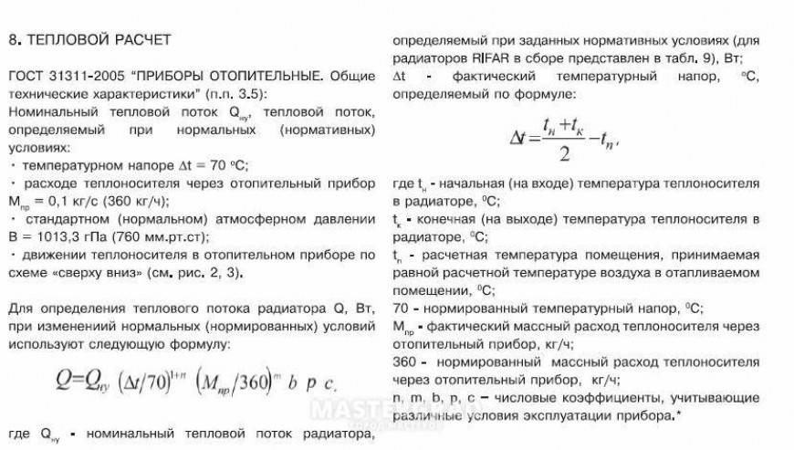 Результаты проводимых расчетов тесно связаны с существующими видами радиаторов отопления. Для получения наилучшего результата в расчетах необходимо знание параметров планируемых к использованию устройств.