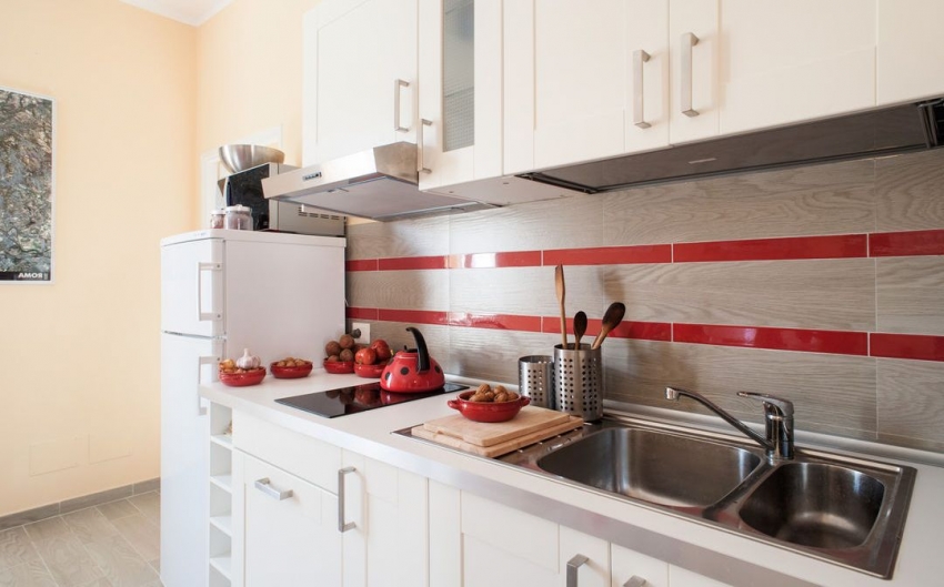 - Для холодильника и вытяжки розетки находятся сверху. Так удобней.