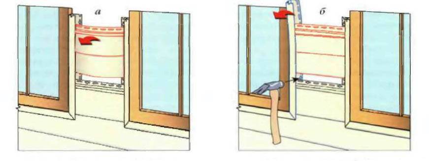 - Точно так же как и снизу, устанавливаются панели сайдинга над проемом.