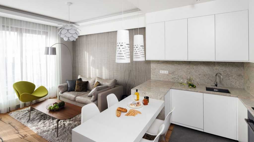 Если планируется организовать несколько зон, важно выполнить разграничение между ними. Сделать это можно с помощью, например, барной стойки, ширмы или даже небольшой перегородки. Иногда в качестве разделителей выступают различные оттенки на стенах или напольном покрытии.