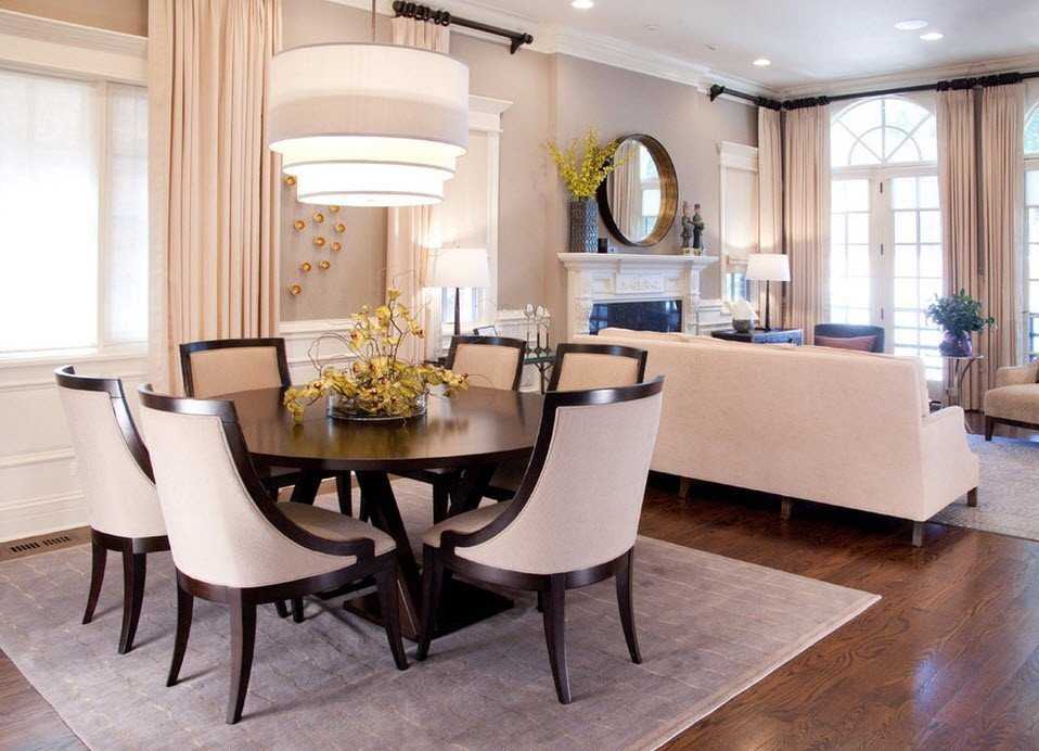 Красиво расставить мебель важно и в зале, и в столовой. Тем более, если эти роли будет исполнять одно и то же помещение. Если из окон открывается прекрасный вид, можно поставить стол и стулья перед ними, чтобы наслаждаться едой при естественном свете, наблюдая за происходящим на улице.