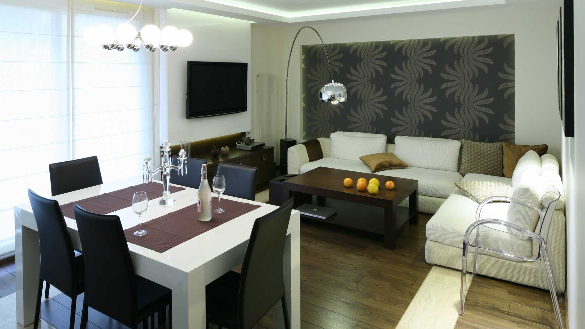 Расставляя мебель, всегда стоит думать об удобстве ее использования. С этой точки зрения идеален стол в центре зала: за ним гости не будут тесниться, а чтобы выйти, не понадобится кого-то беспокоить. Сверху обычно вешают светильник, для уютной домашней атмосферы подойдет красивый абажур теплых оттенков. Разумеется, эта идея не для маленьких комнаток. Для них подходит мебель, расставленная в углу: например, Г-образный диван и возле него обеденный столик. Для узких помещений подойдут удлиненные, неширокие модели, которые можно вплотную придвинуть к стене. Чтобы не заставлять обедающих смотреть в пустоту, можно повесить картины.
