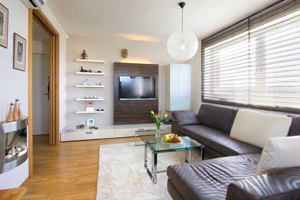 Предметы интерьера должны подбираться, исходя из габаритов имеющегося пространства. В маленьких гостиных лучше отдавать предпочтение компактной и функциональной мебели.