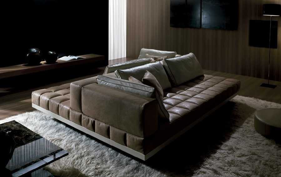 - Островной диван. Такая мебель не создана для маленькой комнаты, расставить все так, чтобы обеспечить проход к ней со всех сторон, не получится. Диван можно разместить в зале, где много свободного пространства.