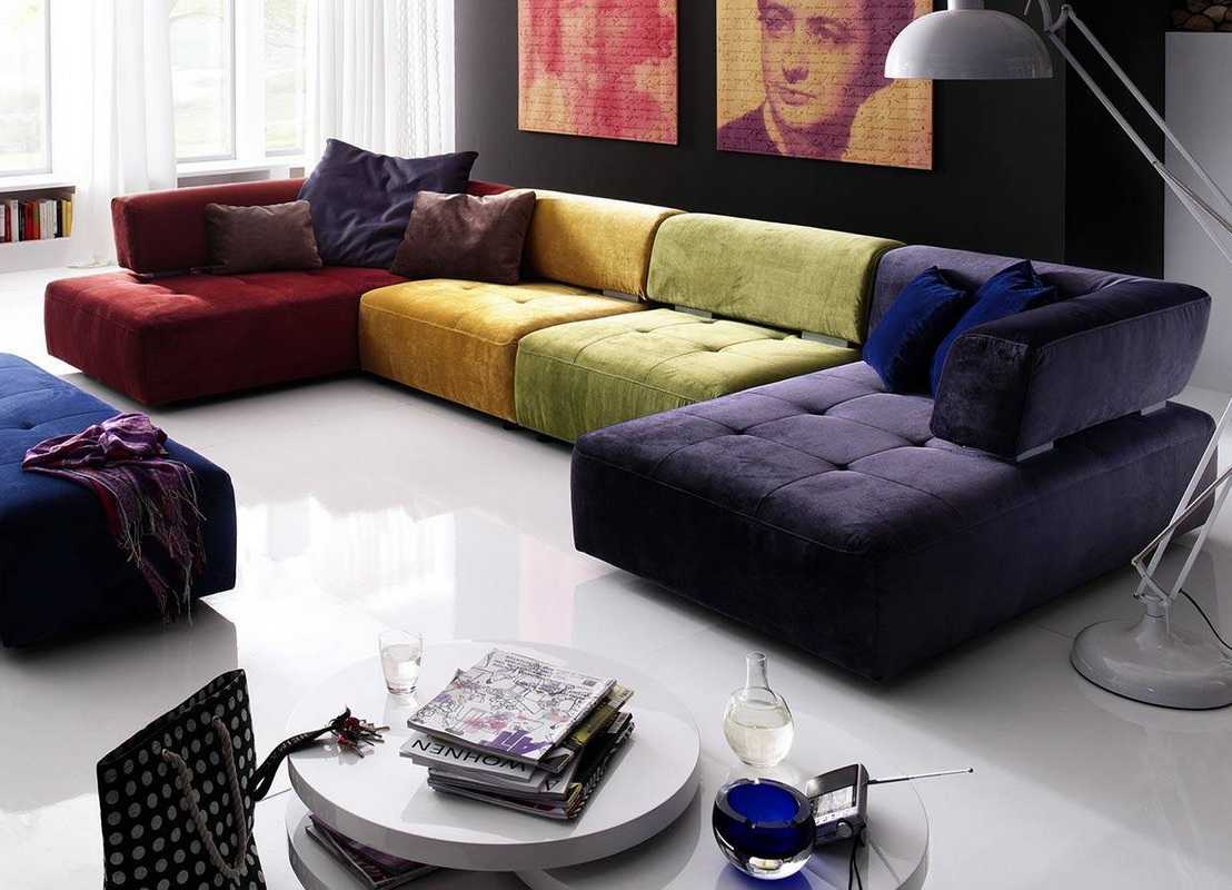 - Модульный. За счет своих подвижных частей такой диван может принять необходимую форму. Это отличный вариант мебели для зала, чтобы обустроить уютное место для чтения, отдыха и бесед.