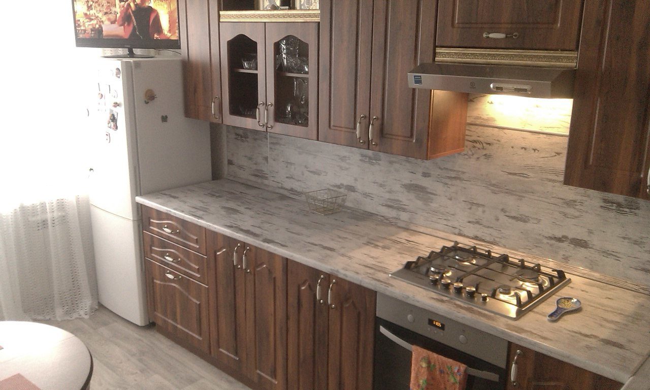 Опытные мастера сразу скажут, нужно немного увеличить фартук или нет. Самое главное при замерах – учесть, как будут стоять нижние шкафы. Они могут располагаться вплотную к стене или возле полового плинтуса.