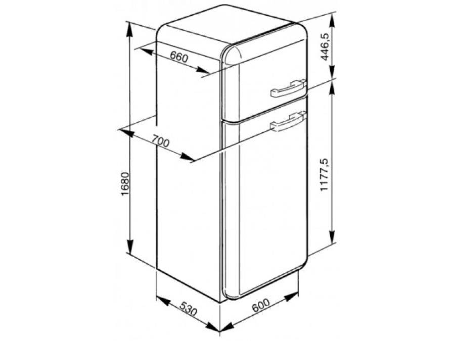 Маленького размера холодильники, как правило, являются однокамерными (не имеют морозильного отсека). Стандартные ширина и высота компактных холодильников: 60 см и 82 см соответственно. Глубина при этом 55–57 см.