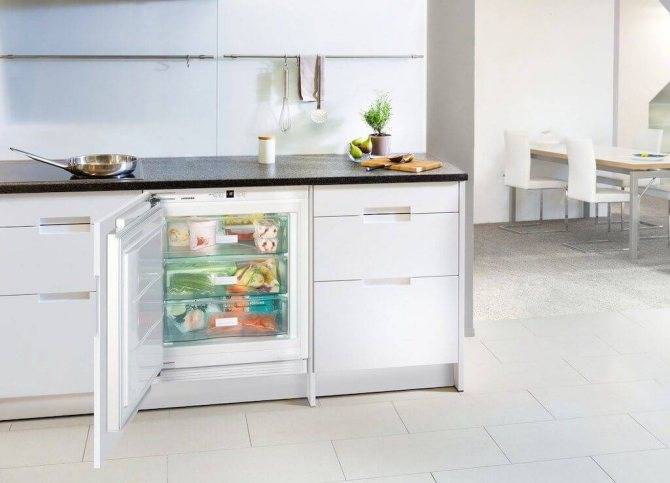 Небольшие холодильники, встраиваемые под столешницу, востребованы не только в домах, но и в отелях, и в офисах. Они очень удобны, ведь корпус мебели может использоваться как тумбочка (под офисную технику или телевизор), или как рабочая зона кухонного гарнитура.