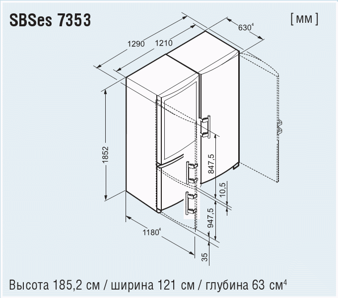 - Европейский вид — морозильник размещён снизу, средняя ширина и глубина при большой высоте;