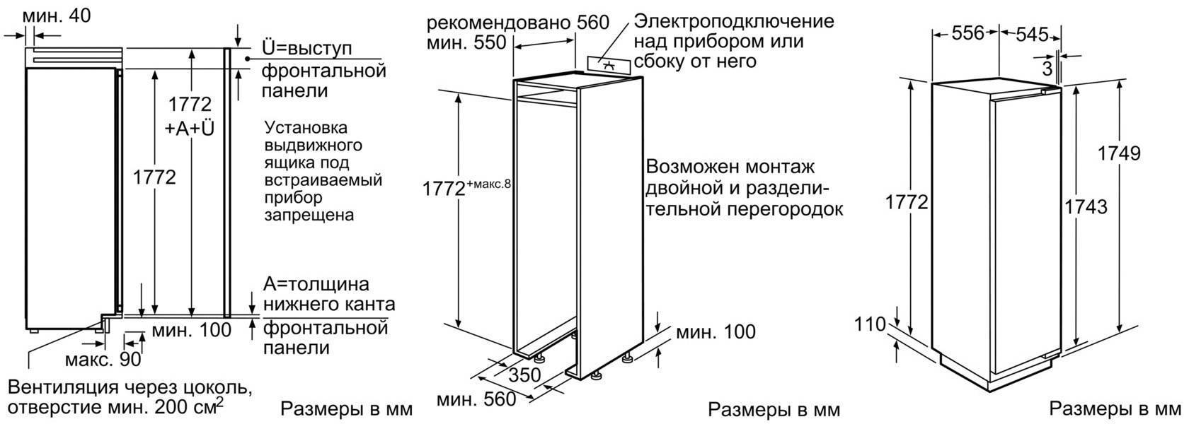 При необходимости докупается морозильная камера, которая также встраивается в мебельный гарнитур, эти работы необходимо продумать заранее.