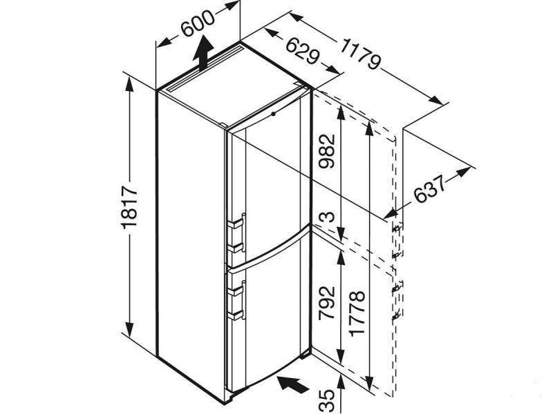 Ширина и глубина. Обусловливает от пустого места в кухне. Пространство, подготовленное под холодильную камеру, изначально отмеряют, а затем начинают подыскивать устройство оптимальных габаритов.