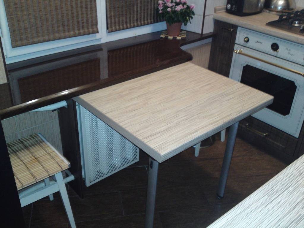 Мрамор или камень используется очень редко и чаще всего в дорогих интерьерах. Если кухня уж совсем маленькая, тогда можно сконструировать откидную столешницу. Она легко регулируется и не загромождает кухонное пространство.