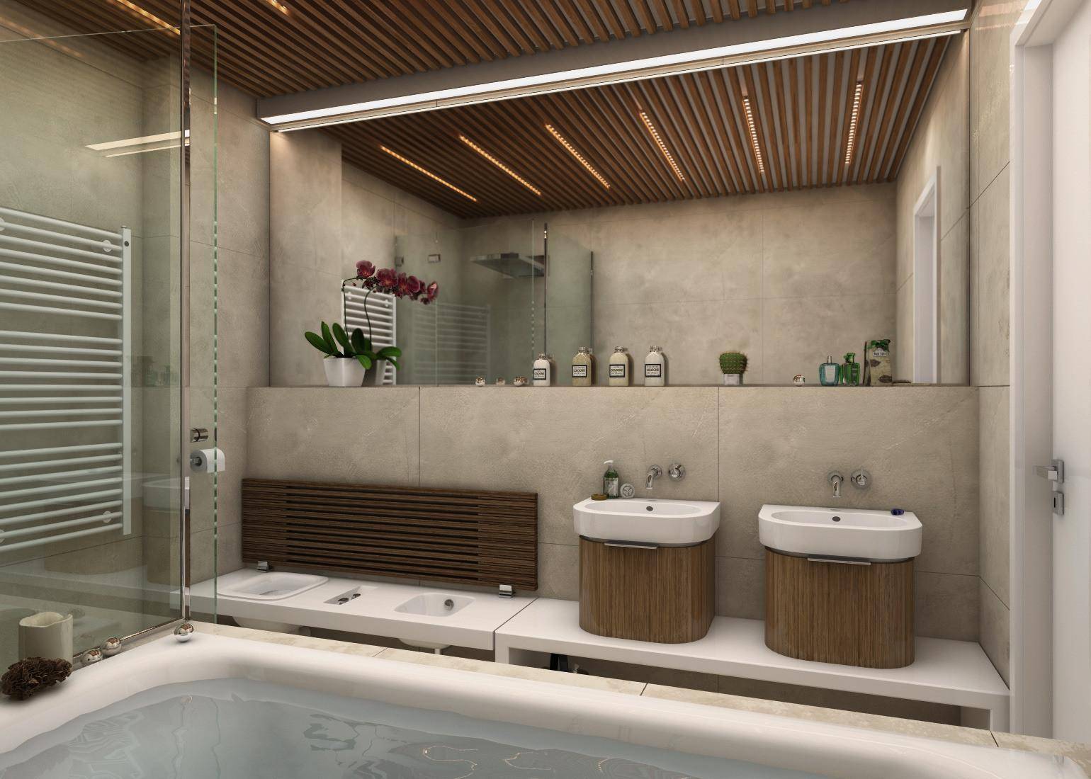 Подобные потолочные покрытия отличаются ярко выраженным рельефом и являются актуальным решением для ванных комнат, преимущественно большого размера. Для многих профессиональных дизайнеров это хороший инструментарий для создания неповторимого образа с учетом индивидуальных потребностей заказчиков.