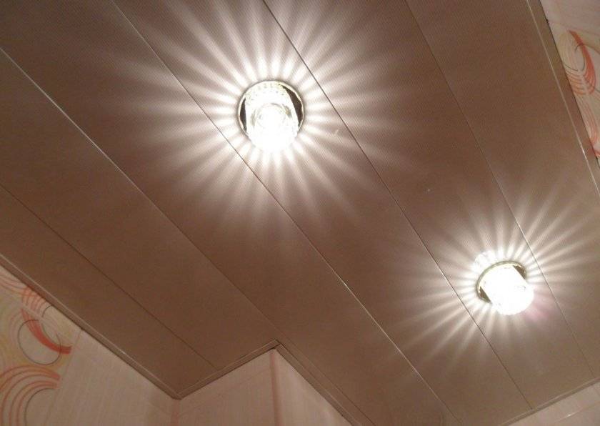 Как и в любом помещении, в ванной комнате тоже должно быть освещение, о котором нужно подумать еще на стадии проектирования и разработки дизайна. В зависимости от типа осветительных приборов проводится их монтаж. Точечные светильники, которые пользуются неизменной популярностью, устанавливаются на этапе крепления реек, тогда как споты, «таблетки» или люстры закрепляются на уже готовом потолке.