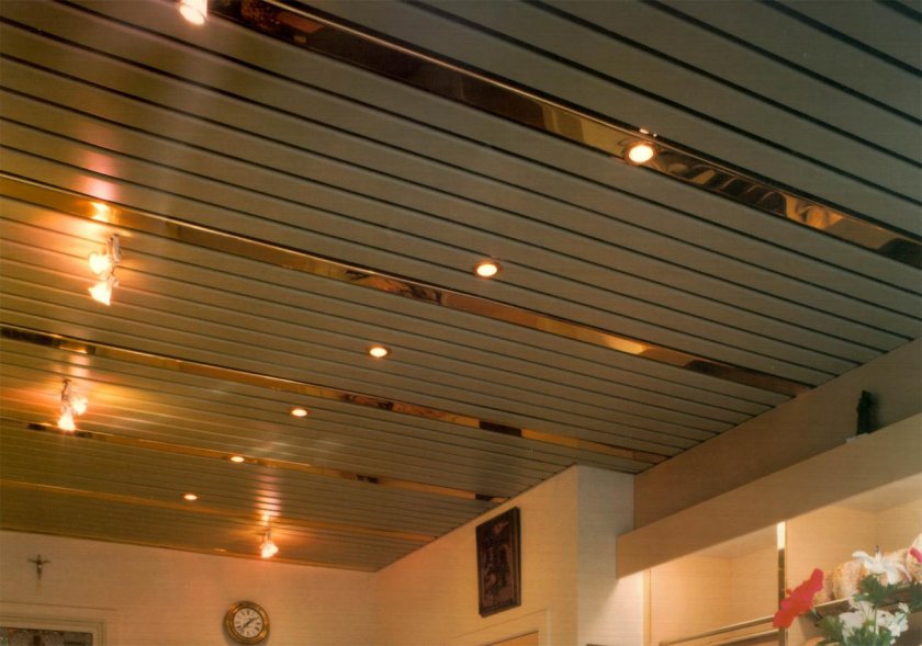 Панели для комбинированного покрытия также различаются по цвету, ширине и толщине. Из разных планок можно создавать оригинальные композиции. Такое потолочное покрытие смотрится очень эффектно.