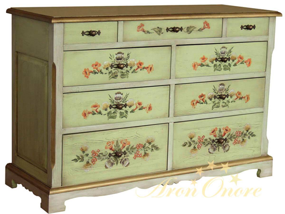 Интересный вариант украшения старой мебели, подойдет для тумбочек, комодов и шкафов. Перед нанесением такого декора необходимо отшлифовать поверхности и нанести акриловую краску. Для самого рисунка можно приобрести готовый набор для декупажа или воспользоваться обоями с интересным рисунком.