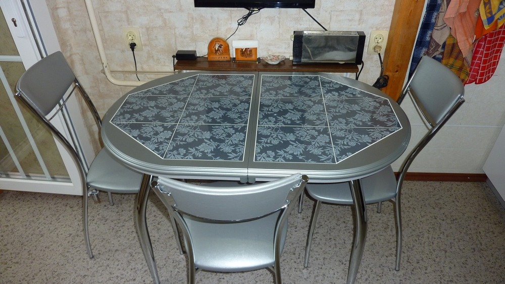 Устанавливают столик подходящей ширины, но не уже 30 см., стулья заменяют легкими удобными табуретами, которые задвигаются после использования под столешницу. Распашную дверь желательно заменить на раздвижную или складывающуюся гармошкой.