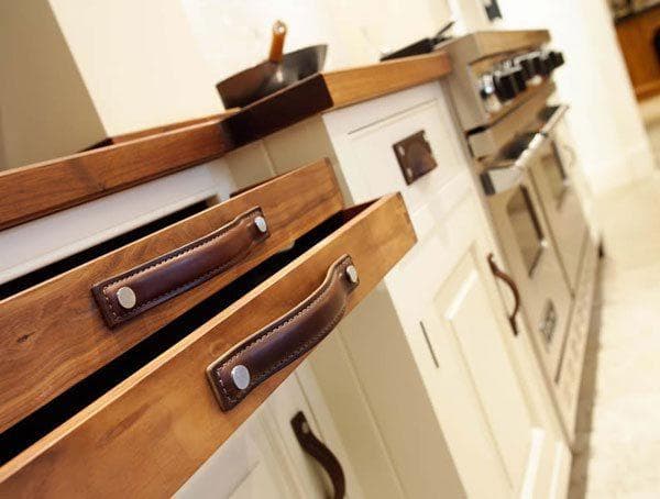 Следующим отличным решением будет замена видимой функционально-декоративной мебельной фурнитуры. В особенности это касается ручек шкафчиков и деревянных ящиков для хранения овощей.
