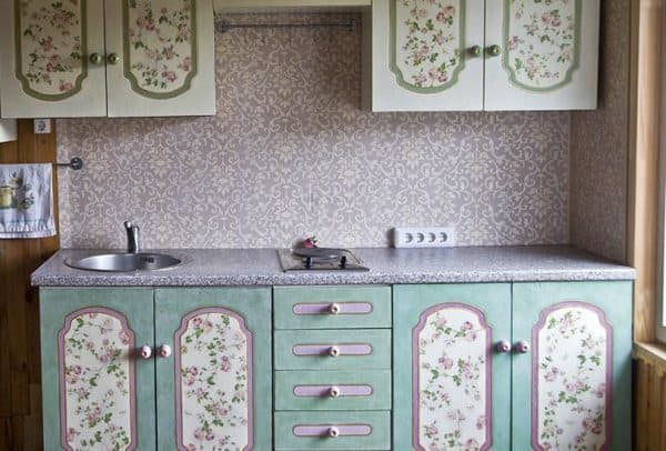 Но подобная отделка требует гладких поверхностей и некоторых навыков, поэтому человеку, впервые столкнувшемуся с вопросом реставрации кухонной мебели своими руками, следует обратить внимание на другое средство – самоклеящуюся пленку
