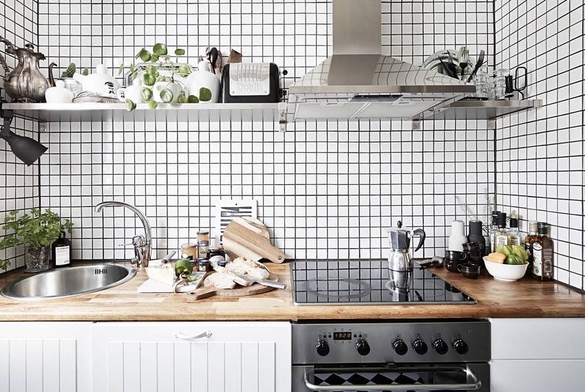 Для ее оформления вы можете выбрать классический вариант — керамическую плитку либо воспользоваться готовым рабочим фартуком. Если вы всё же выбрали первый способ, то вам придется выдержать ряд параметров: