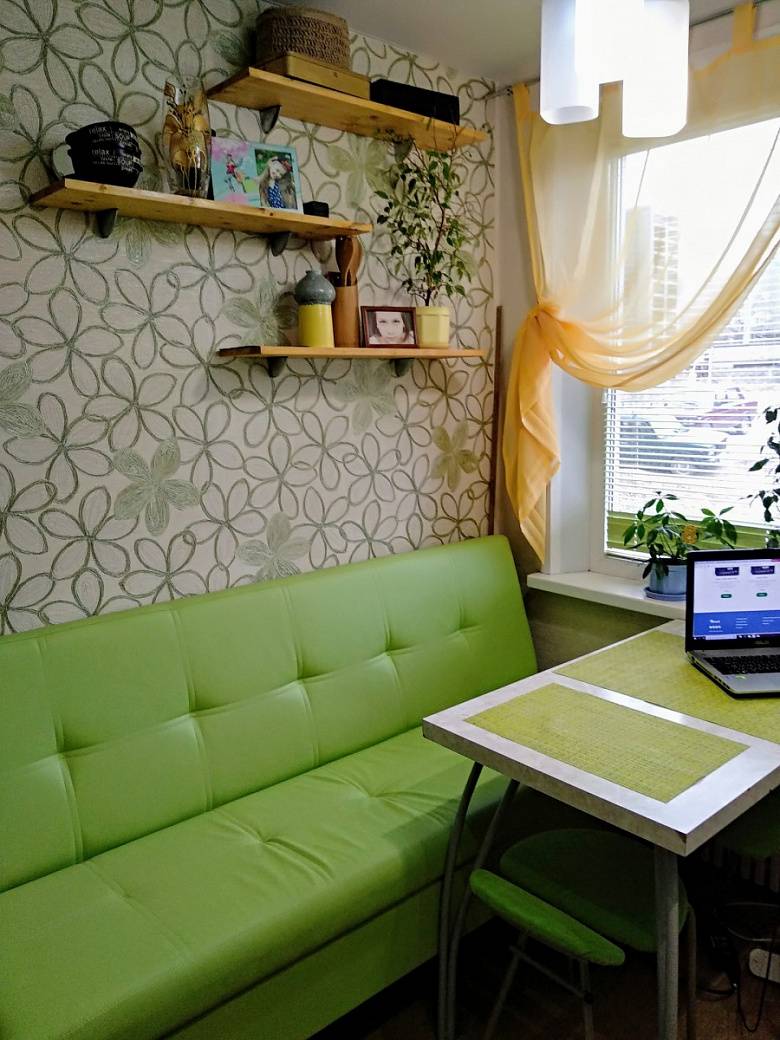 Для маленькой кухни подойдет Г-образная, П-образная, однорядная планировка. Визуально раздвинуть стены и добавить больше света позволит выбор светлых цветов в интерьере, использование зеркальных поверхностей. Также сэкономит место встроенная техника, функциональная мебель, сделанная на заказ, раскладная обеденная группа, ролеты на окнах.