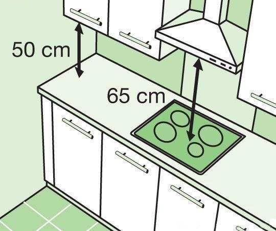 - Вытяжку устанавливают на 650-750 мм от уровня плиты, во избежание ее перегрева и нарушения тяги.