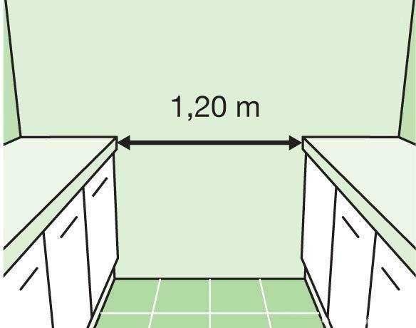 - Расстояние между шкафчиками на противоположных стенах не менее 1200 мм.