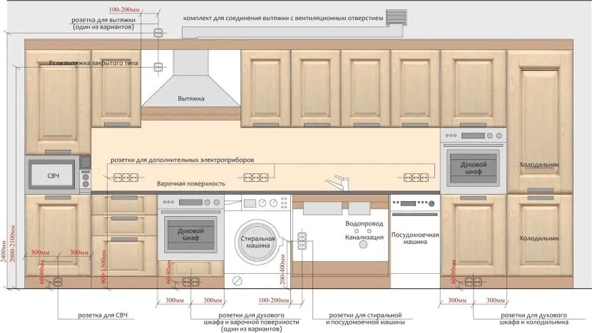 Схема размещения розеток на кухнеИсточник pinimg.com