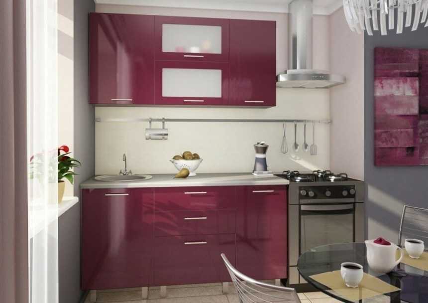 Реальные размеры кухни в хрущевке – 2 на 3 метра. В таком помещении отлично размещается прямой кухонный гарнитур вдоль длинной стены. Этот вариант очень экономичен, поскольку мебель не надо изготавливать под заказ, в отличие от углового гарнитура. К минусам можно отнести нехватку места для холодильника и несоблюдение так называемого принципа треугольника. Однако подобный дизайн кухни в хрущевке подойдет людям, которые не любят много готовить и делают основной акцент на обеденную зону.