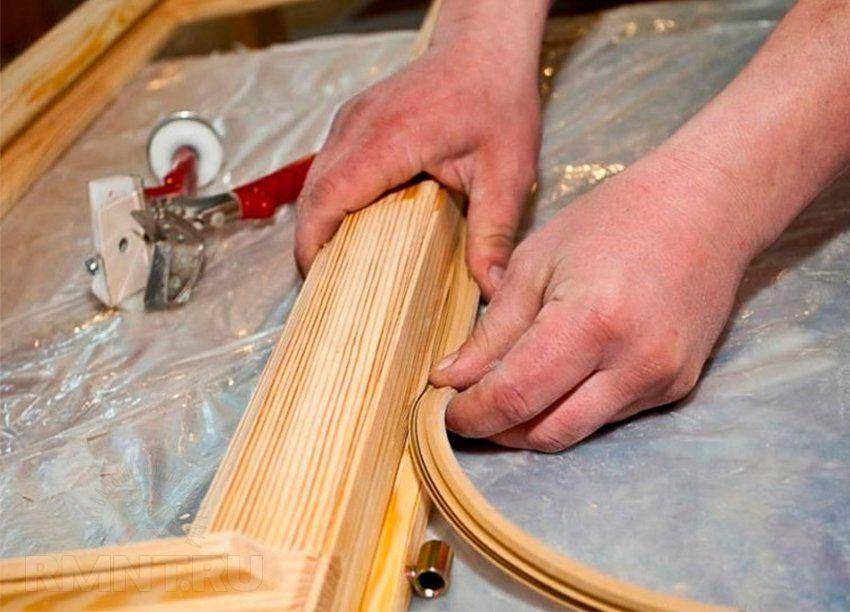 Установка трубчатого уплотнителя – по периметру рамы вырезается паз под углом 45 градусов, из него убирается стружка, поверхность зачищается, в паз помещается и запрессовывается трубчатый уплотнитель. Следует отметить, что специалисты не рекомендуют прибивать уплотнитель гвоздями (шляпки могут проржаветь), а также приклеивать его (возможна потеря эластичности).