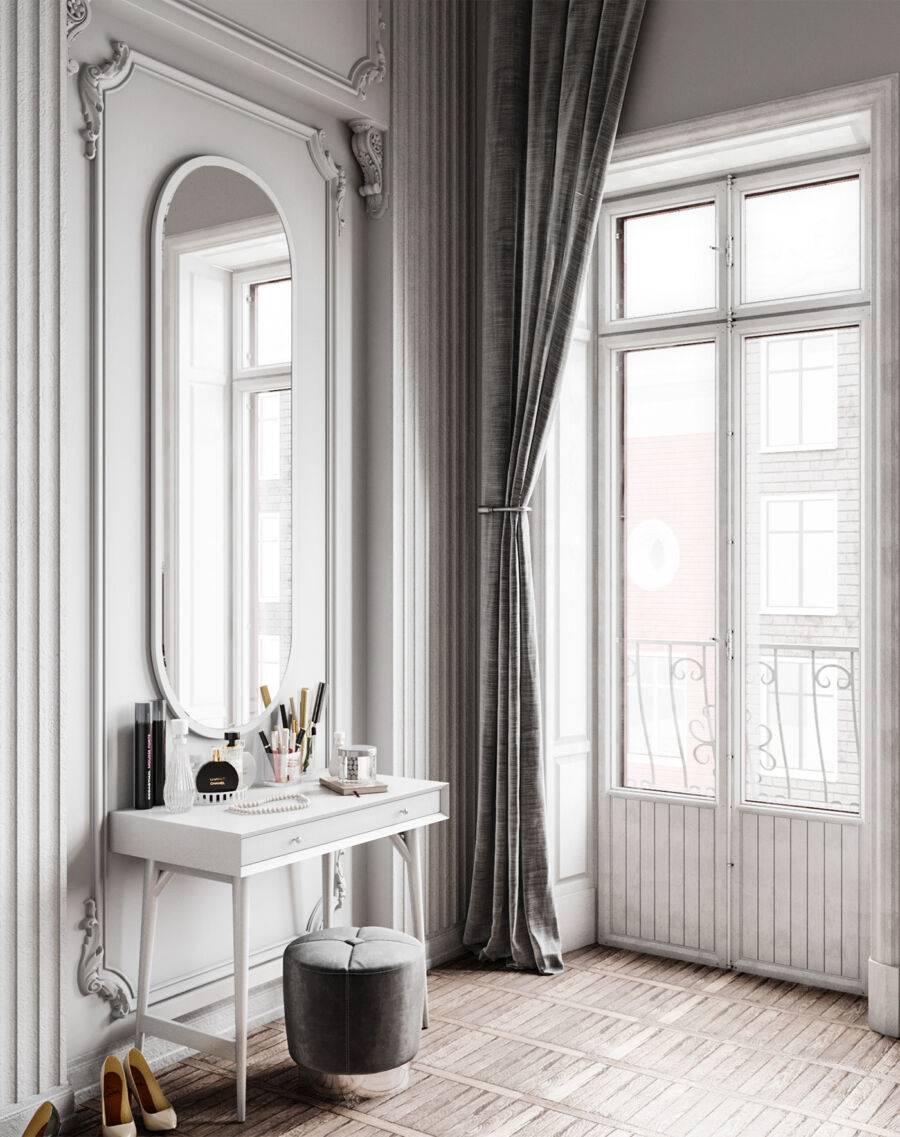 Классический стиль. При расстановке мебели обязательное условие — соблюдение правила симметрии. Тона комнат, как правило, однотипные: светлый классик, темный классик, золотой классик и т.д. Превалирующий цвет всегда один. Вместе с ним допускается одновременное использование еще двух классических цветов. Очень элегантный и респектабельный стиль.