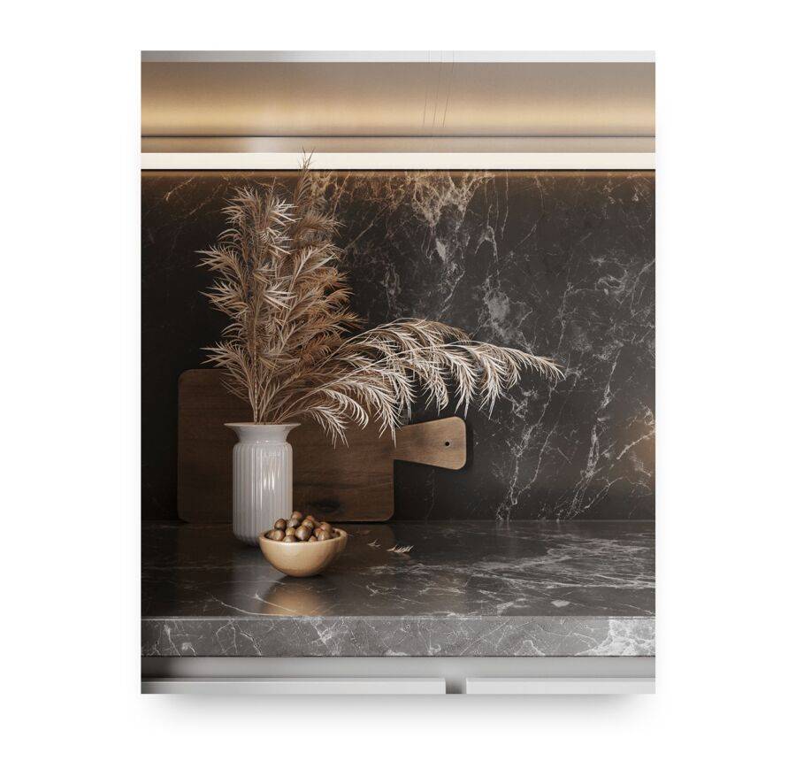 Стиль Хай-тек. При создании используются вся современная бытовая техника: от высокотехнологичных кухонных приспособлений (комбайн, посудомойка) до жидкоплазменных панелей и системы климат-контроль. В интерьере преобладают черные и белые тона. Допускается наличие яркого элемента в другом цвете: желтое кресло, зеленый аквариум. Несколько ярких элементов нарушает основу стиля.