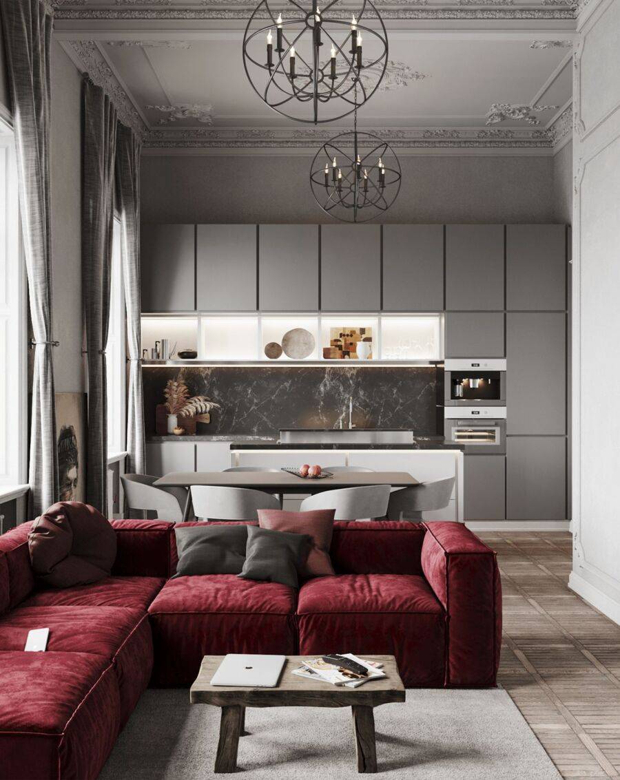 Обе комнаты и кухня должны отвечать одному стилю, выдерживаться в одной цветовой гамме и соответствовать временной эпохе.
