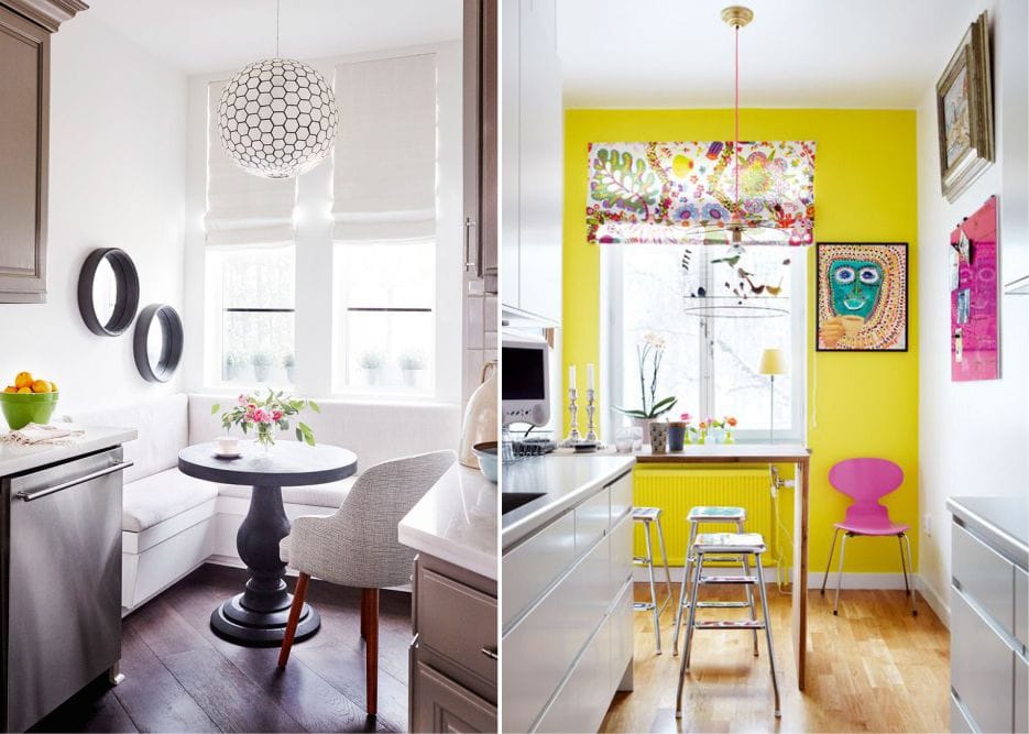 Для скандинавского интерьера кухни подойдут ткани либо нейтральных, либо ярких цветов с оригинальными принтами, например, в стиле «колор блок». Ну а в минималистичных интерьерах и дизайн штор должен быть таким же минималистичным.