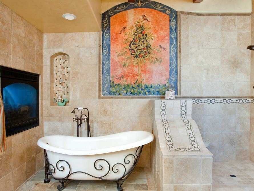 Роспись на стене придает характер тематике выбранного стиля. Для классических и исторических интерьеров это могут быть изображения величественных колон с причудливо изогнутыми пилястрами или фрески под старину. Для этнических дизайнов – узнаваемые виды, ассоциирующиеся со страной, которую вы пожелали воплотить в интерьере квартиры (например, для египетского стиля – пирамиды или сфинкс, для скандинавского – скалистые фьорды или заснеженные горы).