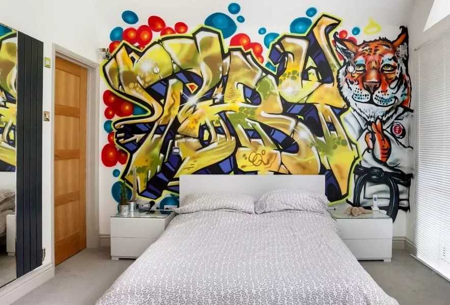 - нанесение граффити. Это вариант уличной росписи стен. Для этой техники используют аэрозольные краски. На стены квартир и частных домов наносят объёмные надписи, абстрактные изображения;