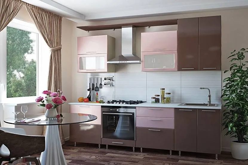 Сочетание розового цвета с другими оттенками в интерьере кухни