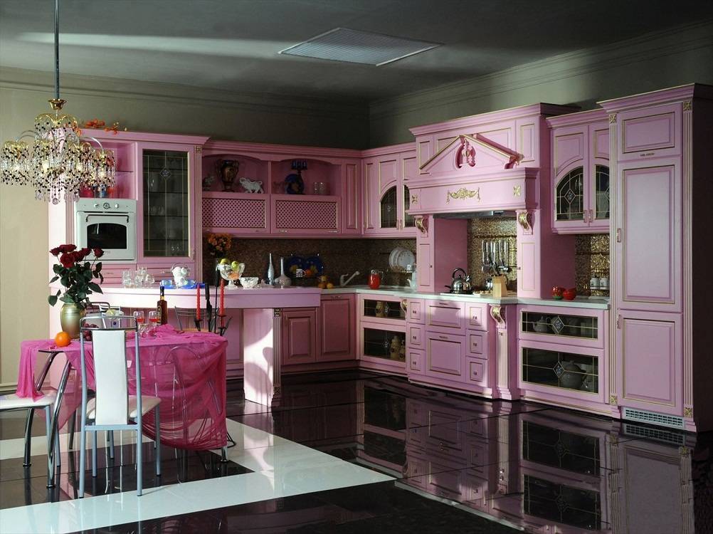 Выбирая смелое оформление для такого помещения, стоит помнить, что здесь собирается вся семья, поэтому каждый должен положительно относиться к интерьеру кухни. Не стоит перенасыщать интерьер оттенками. Если вы предпочитаете открытую мебель, детализированную обстановку, лучше предпочесть светлую розовую гамму.